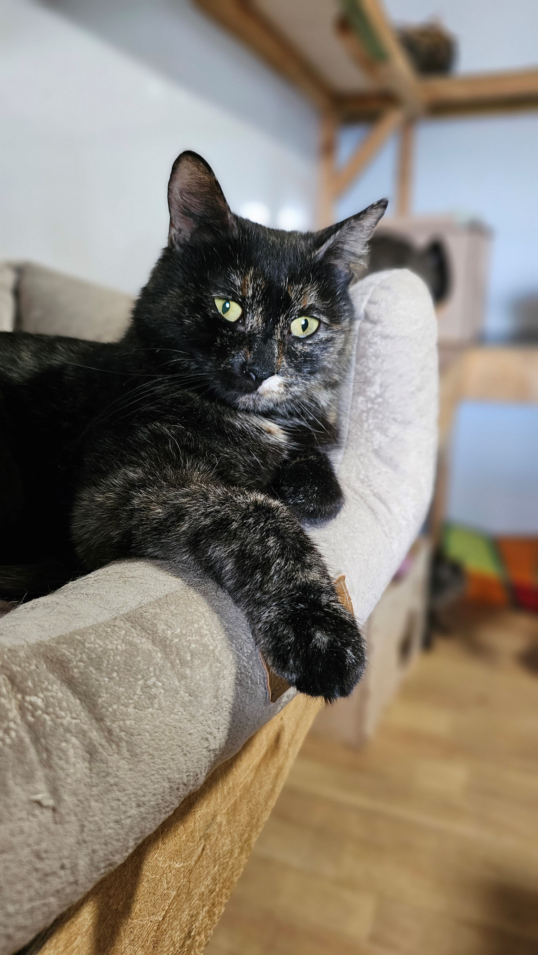 Ирис ценит тишину и уединение — она уютно сворачивается в мягкий плед, словно прячется в собственный бутон покоя. Но стоит только прикоснуться к ней — и она словно оживает: медленно раскрывается, как цветок на рассвете под первыми лучами солнца. Потягивается с грацией, замирает под ласковыми пальцами, мягко подстраиваясь, едва заметно подсказывая, где именно ей особенно приятно. Она смотрит в глаза с редким, глубоким доверием. Ирис не просит любви вслух — но вся её нежность, вся тёплая благодарность живёт в каждом её движении, в самом её присутствии рядом.